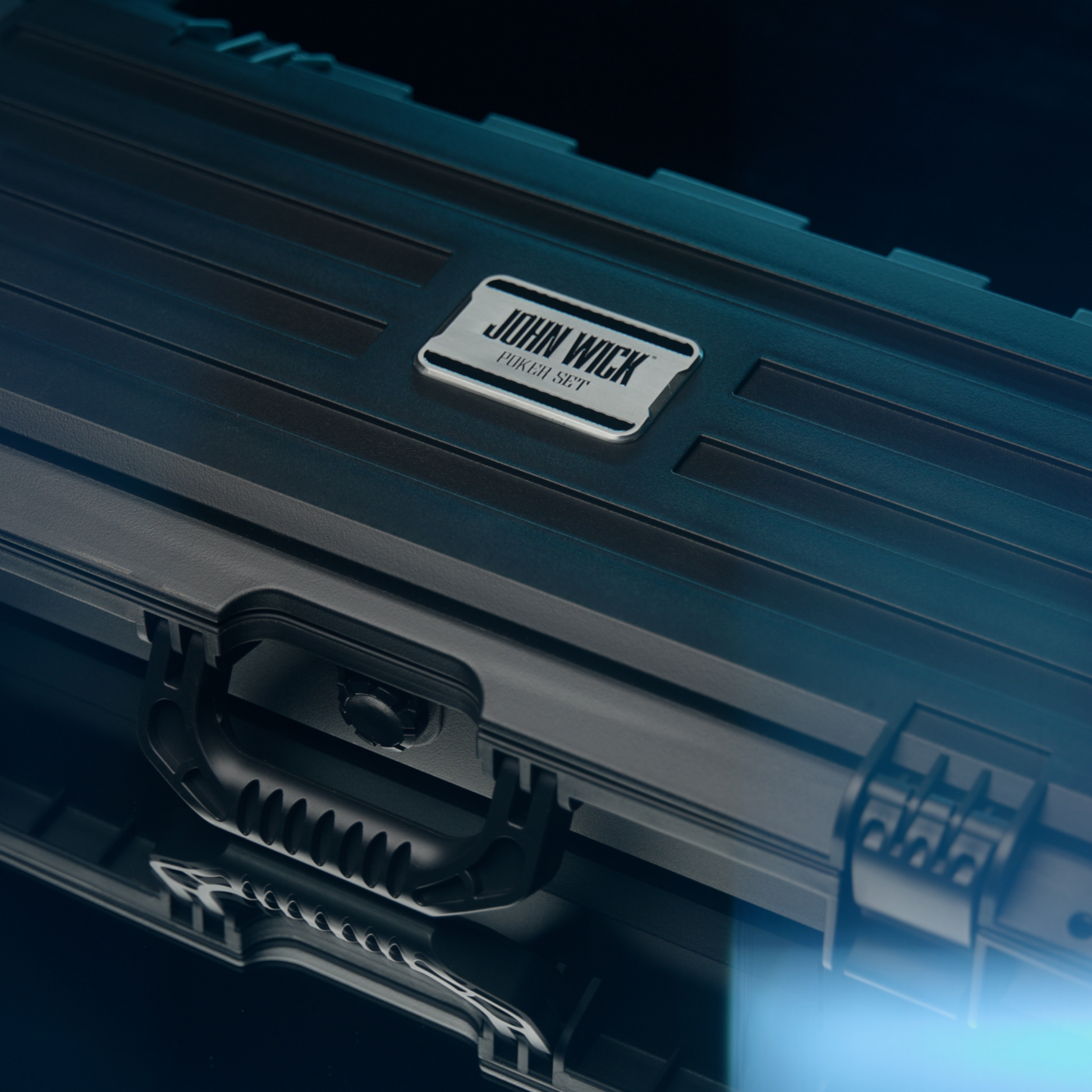 From the world of JOHN WICK: the official collector's poker set. Forged to The High Table's standards, this ensemble holds the sanctioned currency and implements of legend: 50 solid-metal Continental Gold Coins, 250 Clay Chips weighted with DeadDrop© precision, and a four-piece Signature Dealer Stack that locks together as a single totem. Two Collector's Decks bear the iconic weapons inspired by the first film, and a serialized Certificate of Authenticity secures provenance. Every article rests within an armored case—sanctioned, sealed, and ready for those who understand the weight of consequence.