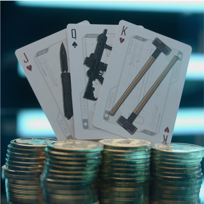 From the world of JOHN WICK : rare implements crafted to exacting The High Table standards. From gold coins recognized in select establishments to chips weighted for high-stakes moments, a collection reserved exclusively for those who understand the weight of consequence.